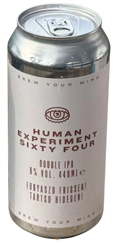 A Human Experiment Sixty Four egy sűrű, ködös Double NEIPA, amely 8%-os alkoholtartalmával és extrém komlózásával a legigényesebb sörkedvelőknek készült.