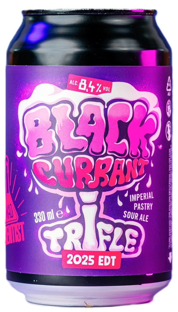 A Mad Scientist Blackcurrant Trifle 2025 EDT a legendás feketeribizlis imperial pastry sour 2025-ös kiadása – egy igazán különleges desszertsör, amely a hagyományos angol trifle desszert ihletésű, feketeribizlivel készült, kellemes savanykás egyensúllyal – minden korty egy angol desszertélmény a pohárban!